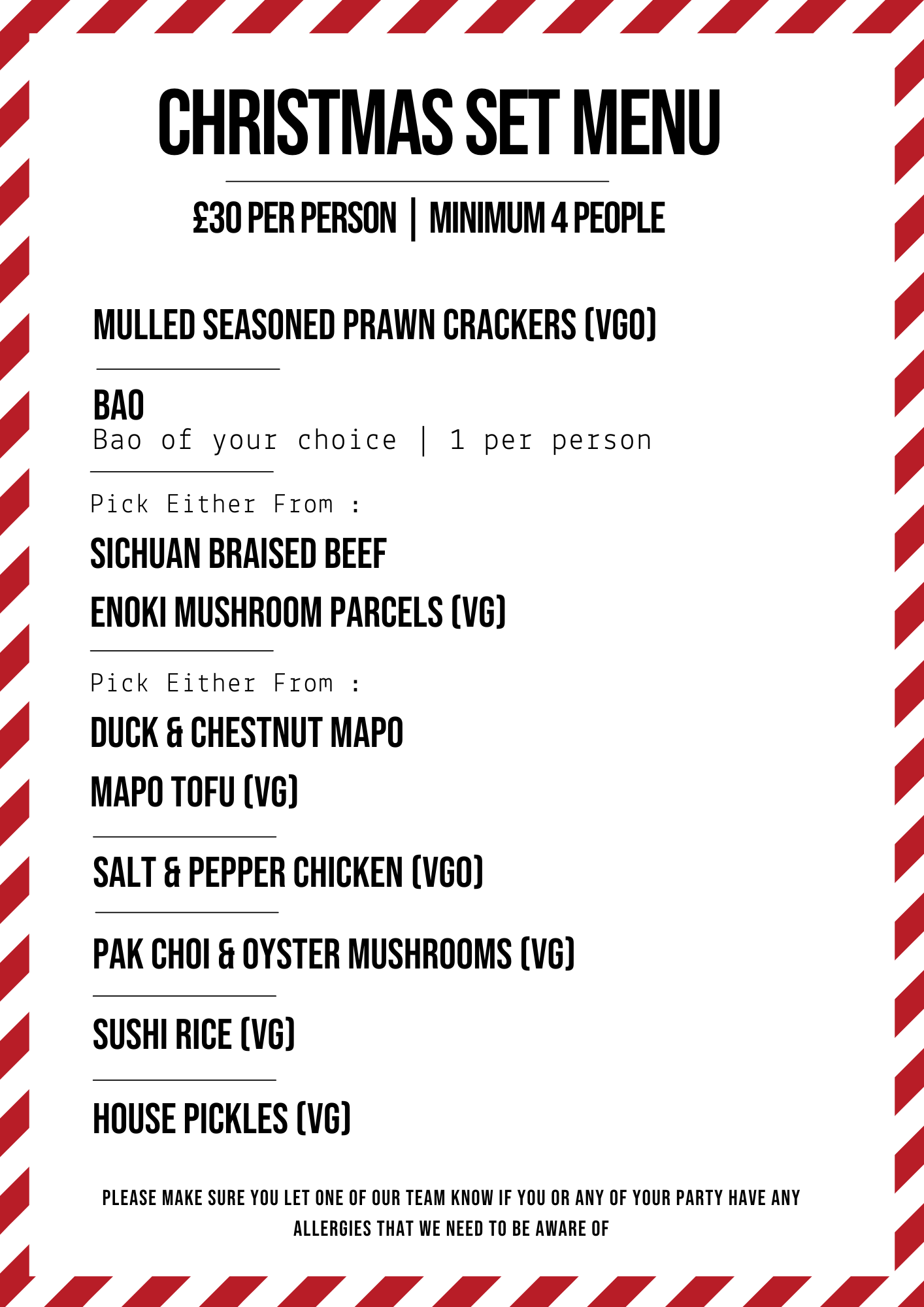 We get very busy during the Christmas period, so we highly recommend booking in advance to avoid disappointment. When making your reservation, please include “Christmas set menu” in the special requests section.