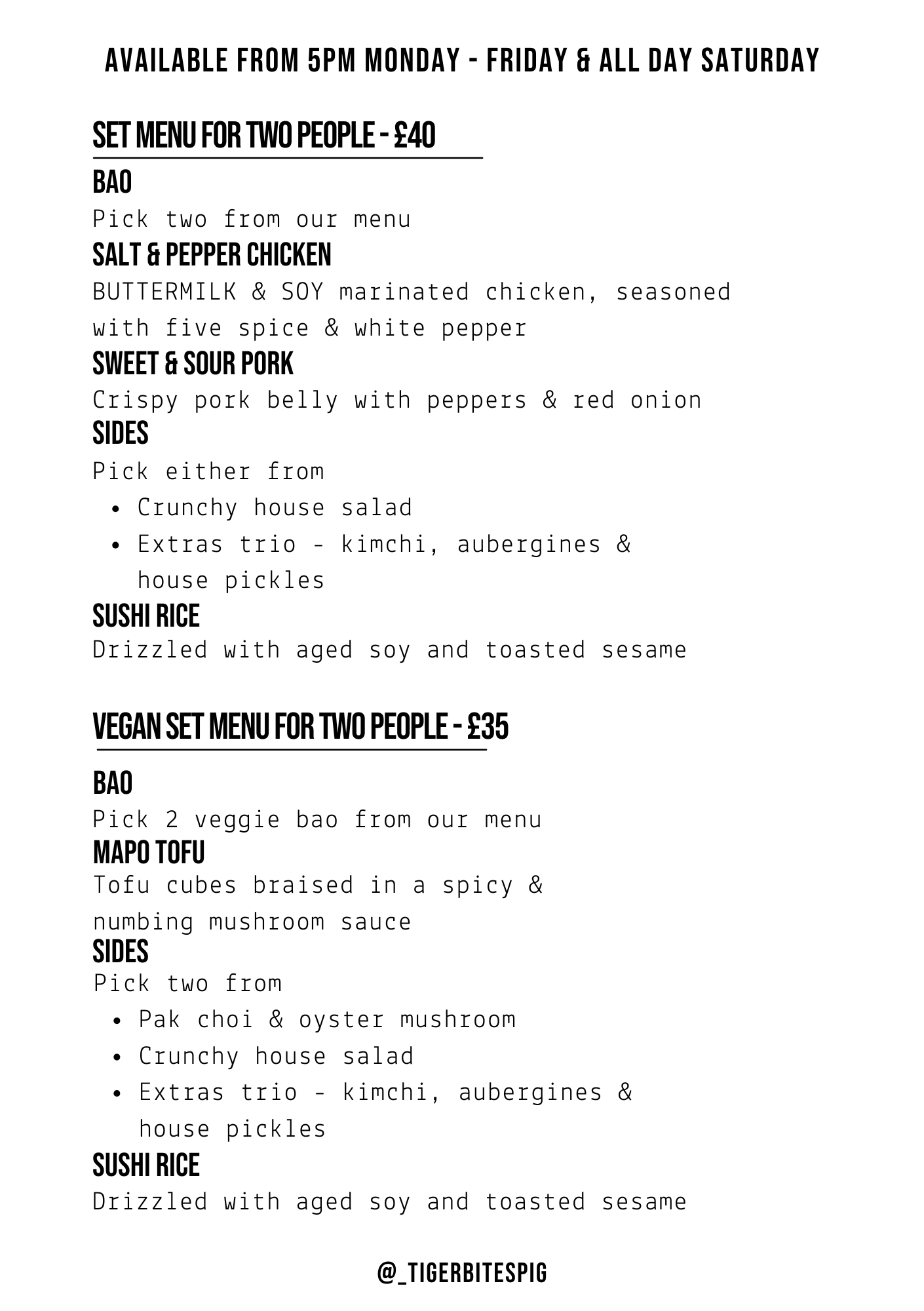 Our Set Menu is available from
